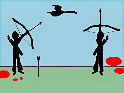 Bowmen Duel is an action game where archers compete to hit opponents twice, with precise mouse-aiming crucial for victory!